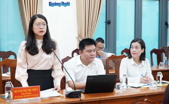 | Phó Giám đốc Sở Văn hóa, Thể thao và Du lịch Huỳnh Thị Thu Thủy trao đổi tại buổi họp báo |