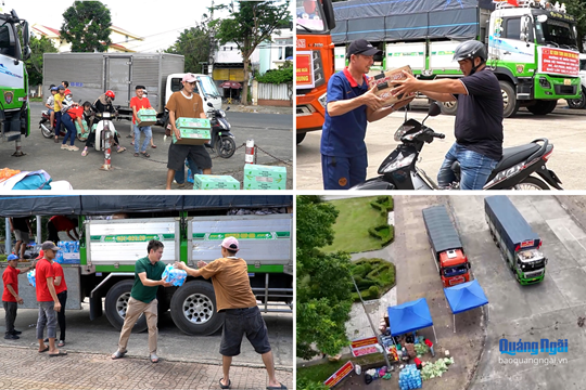 Những ngày này, góc đường Lê Thánh Tôn - Hà Huy Tập, phường Cẩm Thành trở thành điểm tiếp nhận hàng cứu trợ thấm đẫm nghĩa tình. Từ khi tấm băng rôn “Điểm tiếp nhận hàng cứu trợ nhân dân bị thiệt hại lũ lụt các tỉnh miền Bắc” được treo lên, nơi đây luôn tấp nập người ghé đến. Ai có gì góp nấy. Từ mì tôm, nước uống, chăn mền, bánh kẹo, tiền mặt… tất cả đều là tấm lòng sẻ chia của người Quảng Ngãi hướng về đồng bào miền Bắc đang gánh chịu thiệt hại nặng nề do thiên tai, lũ lụt gây ra.