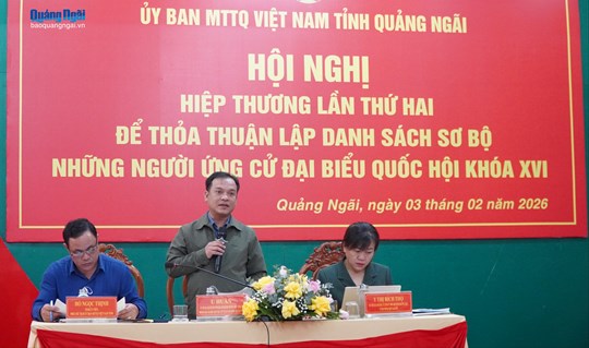 Chiều 03/02, Ủy ban Mặt trận Tổ quốc Việt Nam tỉnh Quảng Ngãi tổ chức Hội nghị hiệp thương lần thứ 2 để thỏa thuận lập danh sách sơ bộ những người ứng cử đại biểu Quốc hội khóa XVI.