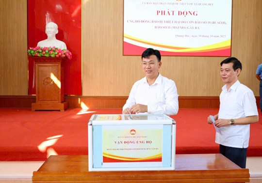Trong ngày 10/10, ngay trước khi diễn ra Hội nghị trực tuyến triển khai đến 100 điểm cầu trong tỉnh nghiên cứu, học tập, quán triệt, tuyên truyền và triển khai Chương trình hành động thực hiện Nghị quyết Đại hội đại biểu Đảng bộ tỉnh lần thứ XVI do Tỉnh ủy Quảng Ninh tổ chức, Ban Thường trực Ủy ban MTTQ Việt Nam tỉnh Quảng Ninh đã phát động phong trào ủng hộ đồng bào các tỉnh bị thiệt hại do bão số 10, 11.