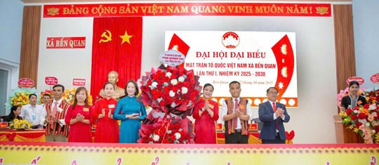 | Đồng chí Lê Thị Mỹ Hiền, Phó Chủ tịch Ủy ban MTTQ Việt Nam tỉnh Quảng Trị tặng hoa chúc mừng Đại hội đại biểu MTTQ Việt Nam xã Bến Quan lần thứ I, nhiệm kỳ 2025 - 2030 |
