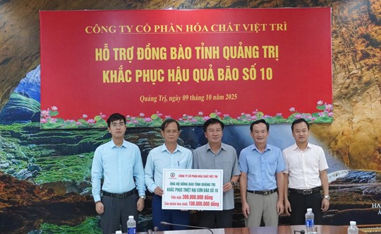 Sau khi nắm bắt tình hình thiệt hại do ảnh hưởng bão số 10 gây ra, đoàn công tác đã chia sẻ với những khó khăn mà Đảng bộ, chính quyền và Nhân dân tỉnh Quảng Trị phải gánh chịu; đồng thời trao hỗ trợ 300 triệu đồng và 70 thùng (3,1 tấn) sản phẩm Vi-Chlorine (trị giá 100 triệu đồng).