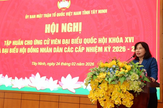 (Mặt trận) - Ngày 24/02, Ban Thường trực Ủy ban MTTQ Việt Nam tỉnh Tây Ninh tổ chức tập huấn cho ứng cử viên đại biểu Quốc hội khóa XVI và đại biểu HĐND các cấp nhiệm kỳ 2026-2031.