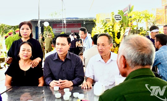 Tại gia đình, đồng chí Vũ Duy Hoàng cùng đoàn công tác đã thắp hương, viếng và gửi lời chia buồn sâu sắc, bày tỏ sự tiếc thương trước mất mát lớn lao của gia đình và địa phương; đồng thời, trao gửi phần hỗ trợ từ Quỹ cứu trợ tỉnh và Quỹ phòng, chống thiên tai tỉnh.