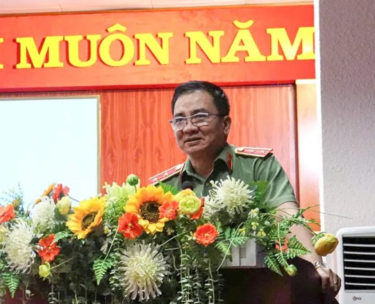 | Trung tướng Nguyễn Minh Đức phát biểu tại buổi tiếp xúc |