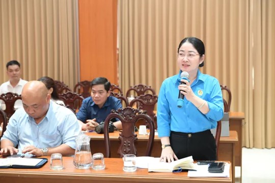 Đại diện lãnh đạo Liên đoàn Lao động TPHCM phát biểu. Ảnh: Văn Minh