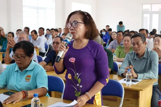 | Cử tri xã Bình Lợi nêu kiến nghị tại buổi tiếp xúc. Ảnh: Cẩm Nương |
