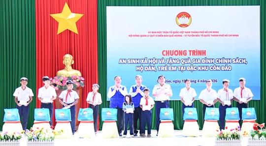 Ngày 12/4, trong khuôn khổ chuyến thăm, làm việc của đoàn đại biểu thành phố Hồ Chí Minh và đoàn công tác Bộ Tư lệnh Vùng Cảnh sát biển 3 tại đặc khu Côn Đảo, Ủy ban MTTQ Việt Nam thành phố Hồ Chí Minh tổ chức chương trình an sinh xã hội, trao tặng quà cho gia đình chính sách, hộ dân, trẻ em có hoàn cảnh khó khăn và các lực lượng vũ trang đóng quân trên địa bàn.