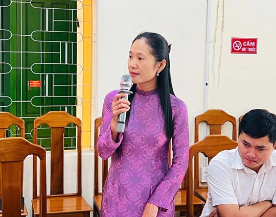 | Đồng chí Trần Viết Tuấn - UVBTV Đảng ủy, Chủ tịch Ủy ban MTTQ Việt Nam xã Bình Điền chia sẻ tại Hội nghị |