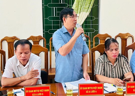 | Đồng chí Lê Văn Nghiếu - UVBTV Đảng ủy, Chủ tịch Ủy ban MTTQ Việt Nam xã A Lưới 4 chia sẻ tại Hội nghị |