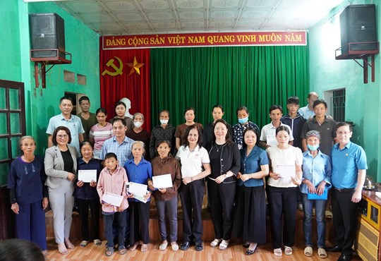 Trong khuôn khổ chuyến công tác, Đoàn cũng đã đến thăm hỏi, động viên và trao tặng tiền và quà cho các hộ dân bị thiệt hại tại xã Phúc Hòa, tỉnh Bắc Ninh; Trao tặng tiền và quà cho Trường Mầm non Liên Cơ Thành phố, tỉnh Thái Nguyên - đơn vị bị thiệt hại nặng do mưa lũ để sớm khắc phục thiệt hại, ổn định cơ sở vật chất nhằm sớm giúp các em học sinh đến trường.