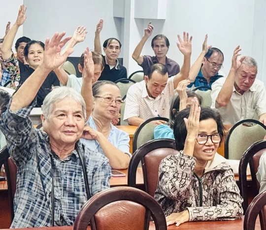 Tham dự có Phó Trưởng ban Thường trực Ban Tuyên giáo và Dân vận Thành ủy TPHCM Lê Văn Minh cùng cử tri khu phố 9 phường Phú Nhuận.