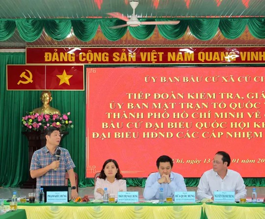 Tại buổi làm việc, đại diện Ủy ban bầu cử xã Củ Chi báo cáo khái quát tình hình triển khai công tác bầu cử trên địa bàn, tập trung vào việc thành lập các tổ chức phụ trách bầu cử; công tác tuyên truyền, phổ biến pháp luật về bầu cử; lập và niêm yết danh sách cử tri; chuẩn bị cơ sở vật chất, nhân sự phục vụ ngày bầu cử theo đúng quy định của Luật Bầu cử.