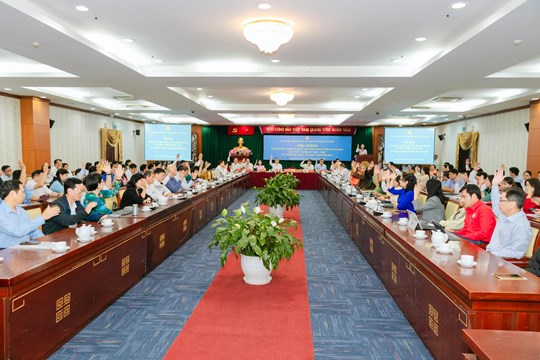 Đại biểu biểu quyết thông qua Nghị quyết hội nghị