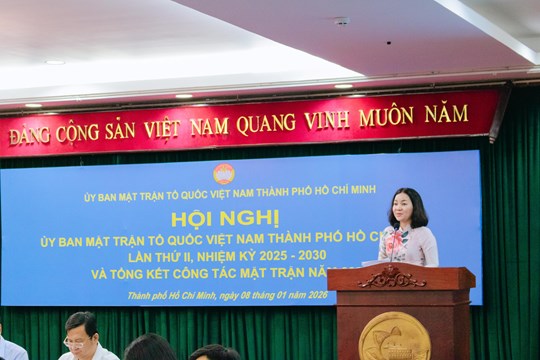 Phát biểu khai mạc, bà Trương Thị Bích Hạnh, Ủy viên Ban Thường vụ Thành ủy, Phó Chủ tịch Thường trực Ủy ban MTTQ Việt Nam TPHCM, nhấn mạnh, năm 2026 là năm đầu tiên triển khai thực hiện Nghị quyết Đại hội Đảng bộ Thành phố và Nghị quyết Đại hội MTTQ Thành phố nhiệm kỳ 2025 - 2030.