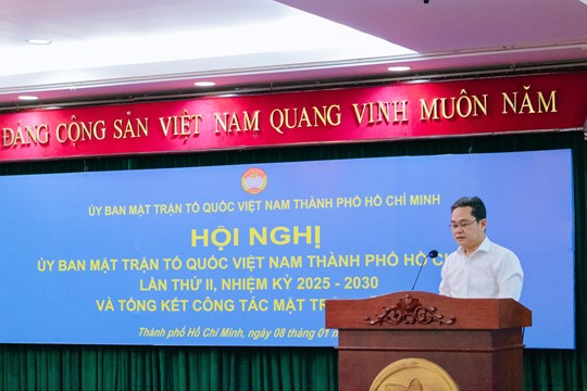 (Mặt trận) - Ngày 8/1, Ủy ban MTTQ Việt Nam TPHCM tổ chức Hội nghị lần thứ II, nhiệm kỳ 2025 - 2030 và tổng kết công tác Mặt trận năm 2025. Ông Nguyễn Phước Lộc, Phó Bí thư Thành ủy, Chủ tịch Ủy ban MTTQ Việt Nam TPHCM tham dự và chủ trì hội nghị.