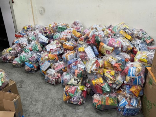 | Các mặt hàng thiết yếu được phân chia từng túi nhỏ để vận chuyển lên xe |