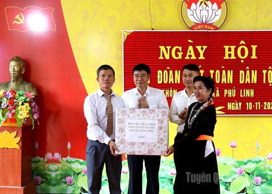 * Ông Hoàng Gia Long, Ủy viên Ban Thường vụ Tỉnh ủy, Phó Chủ tịch UBND tỉnh đã tới dự và chung vui Ngày hội Đại đoàn kết toàn dân tộc cùng cán bộ, Nhân dân thôn Nà Cọn, xã Phú Linh.