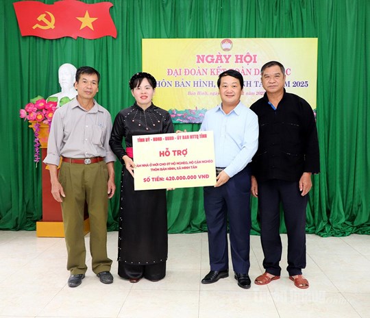 Dịp này, Bí thư Tỉnh ủy Hầu A Lềnh đã trao 420 triệu đồng trích từ Quỹ “Vì người nghèo” hỗ trợ 7 hộ gia đình trong thôn chưa có nhà ở kiên cố, mỗi hộ 60 triệu đồng để làm nhà ở mới; trao 1 bộ tăng âm loa đài để thôn Bản Hình tăng cường công tác thông tin, tuyên truyền, cổ động các phong trào thi đua.
