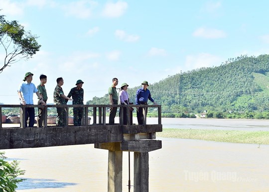 Đoàn công tác đã trực tiếp kiểm tra dọc tuyến đê sông Lô, qua các xã Bình Ca, Đông Thọ, Trường Sinh. Đây là những địa bàn nằm trong khu vực trọng điểm, có nhiều đoạn đê xung yếu, tiềm ẩn nguy cơ mất an toàn khi mực nước sông Lô dâng cao do ảnh hưởng của hoàn lưu cơn bão số 10.