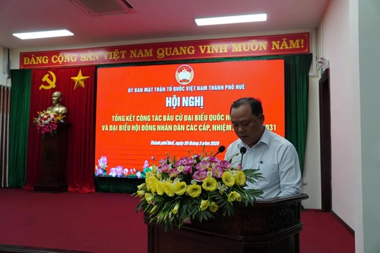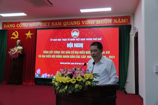 Thay mặt Ban Thường trực Ủy ban Mặt trận Tổ quốc Việt Nam thành phố Huế, đồng chí Nguyễn Tiến Nam, Phó Chủ tịch Ủy ban Mặt trận Tổ quốc Việt Nam thành phố trình bày báo cáo tại Hội nghị, theo đó cuộc bầu cử đã diễn ra dân chủ, đúng pháp luật, an toàn, tiết kiệm, thành công tốt đẹp, thực sự là ngày hội của toàn dân. Trong ngày bầu cử, tình hình an ninh chính trị, trật tự an toàn xã hội được đảm bảo; các phương án phục vụ bầu cử được chuẩn bị chu đáo, đồng bộ. Toàn thành phố có 970.549 cử tri, trong đó 970.515 cử tri tham gia bỏ phiếu, đạt tỷ lệ 99,99%. Có 37/40 xã, phường đạt 100% cử tri đi bầu; 668/676 khu vực bỏ phiếu đạt tỷ lệ tuyệt đối. Cuộc bầu cử đại biểu Quốc hội khóa XVI và đại biểu Hội đồng nhân dân các cấp nhiệm kỳ 2026 - 2031 trên địa bàn thành phố diễn ra thuận lợi, đúng quy định pháp luật, lựa chọn được những đại biểu tiêu biểu, đại diện cho ý chí, nguyện vọng của Nhân dân. Kết quả, thành phố đã bầu đủ 09 đại biểu Quốc hội trên 17 người ứng cử đại biểu Quốc hội khóa XVI; bầu đủ 53 đại biểu Hội đồng nhân dân thành phố trên 89 người ứng cử đại biểu Hội đồng nhân dân thành phố và bầu đủ 804 đại biểu Hội đồng nhân dân cấp xã trên 1.342 người ứng cử đại biểu Hội đồng nhân dân xã, phường nhiệm kỳ 2026 - 2031. Không có đơn vị bầu cử nào phải bầu lại, bầu thêm; đảm bảo cơ cấu, thành phần theo quy định.