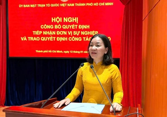 (Mặt trận) - Ngày 12/1, Ủy ban MTTQ Việt Nam thành phố Hồ Chí Minh tổ chức hội nghị công bố quyết định tiếp nhận đơn vị sự nghiệp và trao quyết định công tác cán bộ.