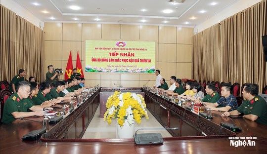 (Mặt trận) - Chiều 6/10, tại Bộ Chỉ huy Quân sự tỉnh Nghệ An, đoàn công tác Thành phố Hồ Chí Minh do đồng chí Bùi Thanh Nhân - Ủy viên Ban Thường vụ Thành ủy, Phó Chủ tịch Ủy ban MTTQ Việt Nam Thành phố Hồ Chí Minh, Chủ tịch Liên đoàn Lao động Thành phố Hồ Chí Minh làm Trưởng đoàn đã trao 7 tỷ đồng hỗ trợ đồng bào Nghệ An khắc phục thiệt hại do cơn bão số 10.