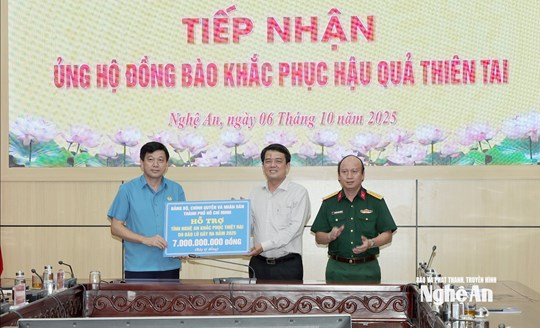 Từ đầu năm đến nay, cán bộ, người dân Thành phố Hồ Chí Minh đã có 3 đợt ủng hộ Nghệ An khắc phục hậu quả thiên tai. Tổng 3 đợt hỗ trợ là 15 tỷ đồng. Trong đó, đợt ủng hộ lần này để giúp nhân dân Nghệ An khắc phục hậu quả bão số 10 là 7 tỷ đồng.
