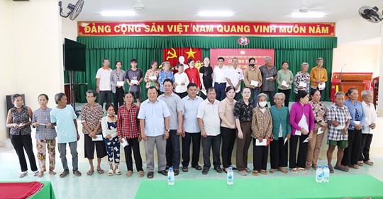 (Mặt trận) - Sáng ngày 12/4, Ủy ban MTTQ Việt Nam tỉnh Vĩnh Long tổ chức tặng quà cho hộ nghèo, cận nghèo người Khmer xã Hàm Giang, Đại An nhân dịp Chôl Chnăm Thmây năm 2026.