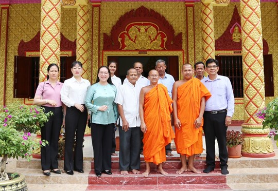 | Đoàn công tác của Ủy ban MTTQ Việt Nam tỉnh chụp ảnh lưu niệm cùng Hòa thượng Thạch Sok Xane |