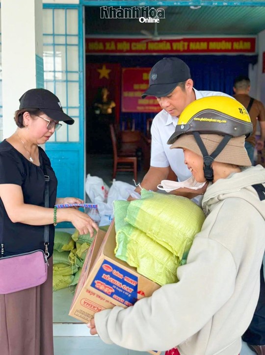 Đại diện đoàn thiện nguyện trao quà cho người dân.