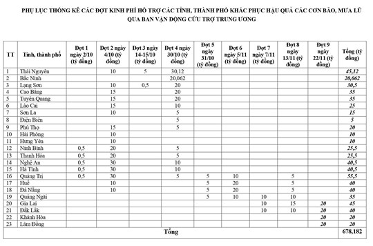 Ban Vận động Cứu trợ Trung ương đã phân bổ tổng số tiền là 678,182 tỷ đồng