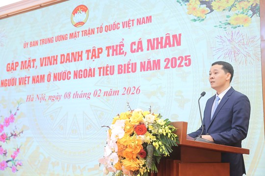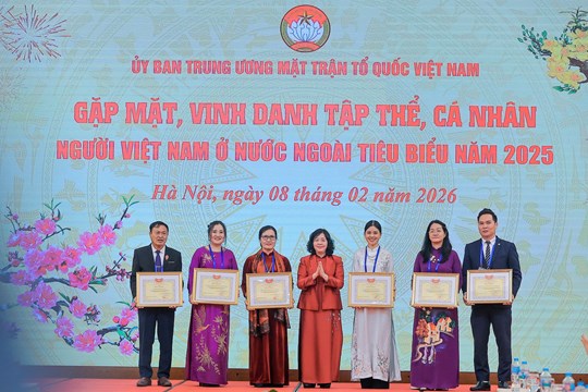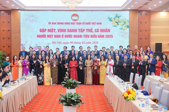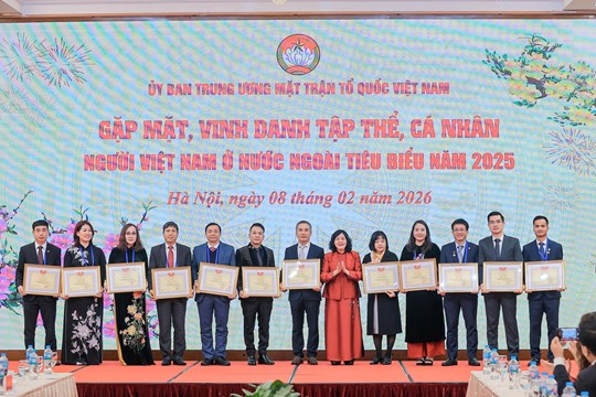 (Mặt trận) - Sáng 8/2, tại Hà Nội, Ủy ban Trung ương MTTQ Việt Nam tổ chức gặp mặt, vinh danh tập thể, cá nhân người Việt Nam ở nước ngoài tiêu biểu năm 2025.