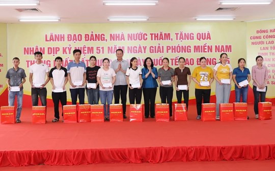 (Mặt trận) - Chiều 27/4, nhân kỷ niệm 51 năm Ngày Giải phóng miền Nam, thống nhất đất nước (30/4/1975 - 30/4/2026) và 140 năm Ngày Quốc tế Lao động (1/5/1886 - 1/5/2026), Đoàn công tác của lãnh đạo Đảng, Nhà nước do đồng chí Bùi Thị Minh Hoài, Ủy viên Bộ Chính trị, Bí thư Trung ương Đảng, Bí thư Đảng ủy MTTQ và các đoàn thể Trung ương, Chủ tịch Ủy ban Trung ương MTTQ Việt Nam làm Trưởng đoàn, đã đến Công ty TNHH Sakurai, phường Quảng Phú trao quà cho các gia đình chính sách, người nghèo và công nhân lao động có hoàn cảnh khó khăn tại tỉnh Thanh Hóa.