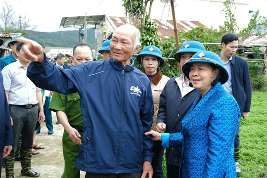Bày tỏ sự cảm thông sâu sắc trước thiệt hại mà người dân địa phương phải gánh chịu trong đợt thiên tai lần này, Chủ tịch Ủy ban Trung ương MTTQ Việt Nam Bùi Thị Minh Hoài cũng động viên bà con vượt qua khó khăn, sớm khôi phục sản xuất, ổn định sinh hoạt.
