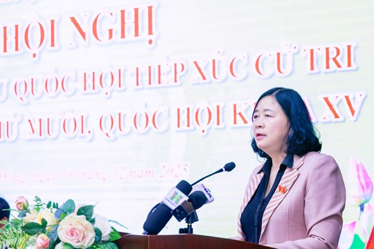 Thay mặt Tổ đại biểu Quốc hội Đơn vị bầu cử số 4 ghi nhận và tiếp thu những ý kiến của các cử tri tại Hội nghị, Chủ tịch Bùi Thị Minh Hoài trân trọng cảm ơn cử tri của 11 xã, phường đã tham dự trách nhiệm, đông đủ và trao gửi niềm tin của cử tri tới các đại biểu Quốc hội. Những ý kiến của các cử tri phát biểu tại Hội nghị với tinh thần tâm huyết, trách nhiệm cao, thể hiện sự đồng thuận hưởng ứng chủ trương, chính sách của Đảng, những quyết sách theo thẩm quyền của Quốc hội, sự điều hành của Chính phủ trong phát triển kinh tế - xã hội, đảm bảo quốc phòng, an ninh, mở rộng hợp tác đối ngoại, nâng cao vị thế của đất nước trên trường quốc tế.
