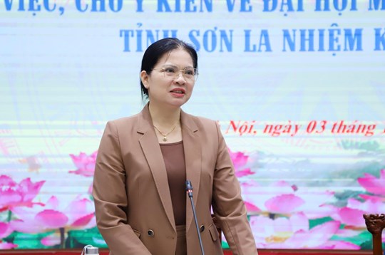 Đánh giá cao công tác chuẩn bị tài liệu của Ủy ban MTTQ Việt Nam tỉnh Sơn La, Phó Chủ tịch Hà Thị Nga gợi mở, từ ý kiến của đại biểu tham dự cuộc làm việc, Mặt trận tỉnh cần tiếp tục nghiên cứu hoàn thiện Báo cáo chính trị, xác định rõ mục tiêu, chỉ tiêu, nhiệm vụ trọng tâm và giải pháp thực hiện trong cả nhiệm kỳ. Đặc biệt cần nghiên cứu, bổ sung các nội dung trong bài phát biểu chỉ đạo của đồng chí Tổng Bí thư tại Đại hội Đảng bộ MTTQ, các đoàn thể Trung ương lần thứ nhất và kế hoạch tổ chức thực hiện bài phát biểu của Tổng Bí thư của Ban Thường trực Ủy ban Trung ương MTTQ Việt Nam vào phần mục tiêu, phương hướng hoạt động, các chương trình hành động nhiệm kỳ tới.