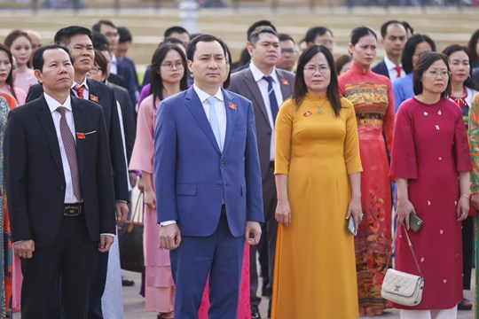 | Đoàn đại biểu dự Đại hội thi đua yêu nước Cơ quan Ủy ban Trung ương MTTQ Việt Nam vào Lăng báo công dâng Bác |