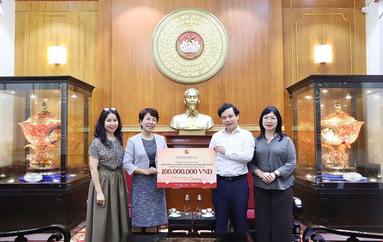 Bà Hà Thị Nga, Uỷ viên Trung ương Đảng, Phó Chủ tịch Uỷ ban Trung ương MTTQ Việt Nam đã tiếp nhận từ Công ty TNHH Đầu tư và Phát triển DB (Ecopark) số tiền 15 tỷ đồng |