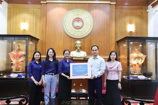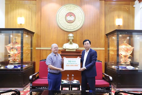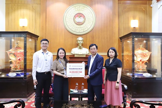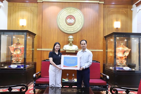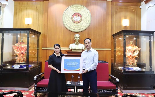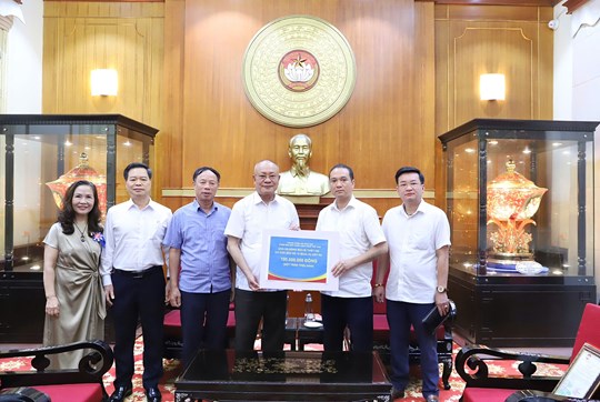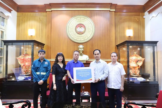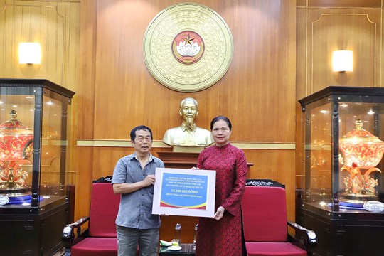Ủy viên Trung ương Đảng, Phó Chủ tịch Ủy ban Trung ương MTTQ Việt Nam Hà Thị Nga tiếp nhận ủng hộ từ Nhóm bạn lớp 10B khoá 1961-1974 trường Phổ thông công nghiệp Hà Nội |