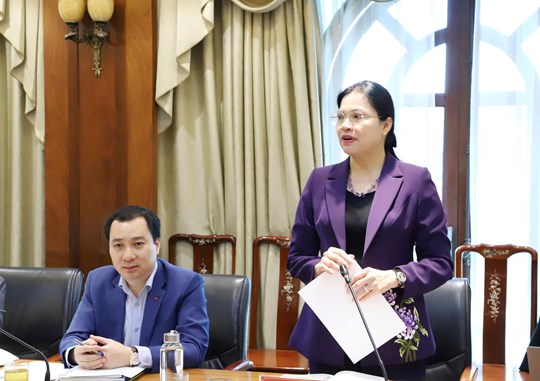 Bà Hà Thị Nga, Ủy viên Trung ương Đảng, Phó Chủ tịch Ủy ban Trung ương MTTQ Việt Nam phát biểu tại cuộc làm việc
