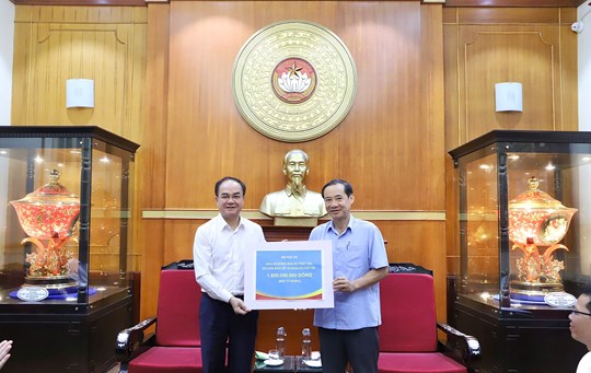 (Mặt trận) - Ngày 13/10, ông Nguyễn Thái Học, Phó Bí thư Đảng uỷ MTTQ, các đoàn thể Trung ương đã tiếp nhận từ Bộ Nội vụ số tiền 1 tỷ đồng; từ thầy cô, phụ huynh và các em học sinh trường Mầm non Tổ Chim – Casa Dei Piccioni số tiền 28,859 triệu đồng để góp thêm nguồn lực giúp nhân dân các tỉnh bị ảnh hưởng bởi bão lũ vượt qua khó khăn, sớm tái thiết cuộc sống.
