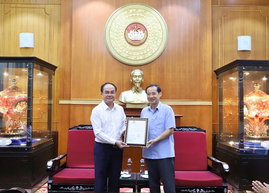 Ông Nguyễn Thái Học, Phó Bí thư Đảng ủy MTTQ, các đoàn thể Trung ương tiếp nhận và trao thư cảm ơn Bộ Nội vụ