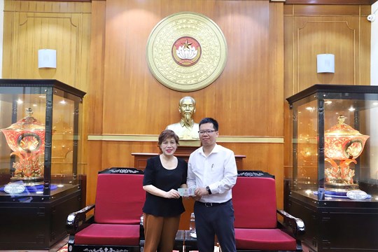 Ông Nguyễn Thái Học – Phó Bí thư Đảng ủy MTTQ, các đoàn thể Trung ương tiếp nhận ủng hộ từ các tập thể