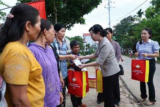 Nhằm kịp thời hỗ trợ các gia đình bị ảnh hưởng lũ lụt, đoàn công tác UBTƯ MTTQ Việt Nam đã trao nhiều phần quà cho các hộ dân. Những món quà thể hiện tinh thần tương thân tương ái, là nguồn động viên tinh thần, vật chất giúp người dân vững tin vượt qua khó khăn, sớm ổn định cuộc sống.