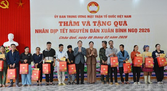 (Mặt trận) - Chiều 6/2, Đoàn công tác của Ủy ban Trung ương Mặt trận Tổ quốc Việt Nam do đồng chí Hà Thị Nga - Ủy viên Trung ương Đảng, Phó Chủ tịch - Tổng Thư ký Ủy ban Trung ương Mặt trận Tổ quốc Việt Nam làm Trưởng đoàn đã đến thăm, tặng quà Tết tại xã Châu Quế, nhân dịp Tết Nguyên đán Bính Ngọ năm 2026.