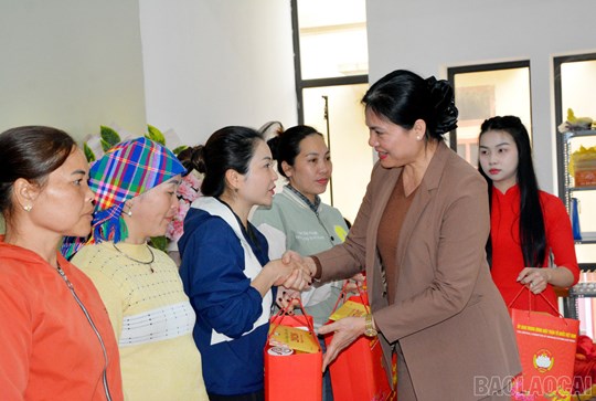 Phó Chủ tịch - Tổng Thư ký Ủy ban Trung ương MTTQ Việt Nam Hà Thị Nga thăm, tặng quà Tết tại xã Châu Quế, tỉnh Lào Cai