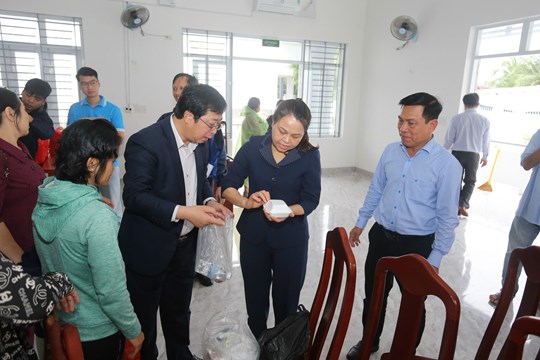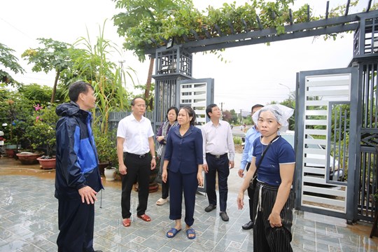 | Phó Chủ tịch - Tổng Thư ký Nguyễn Thị Thu Hà đến hiện trường vùng ngập sâu xã Diên Thọ. |