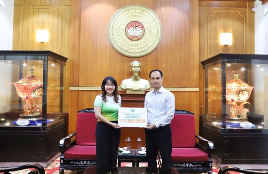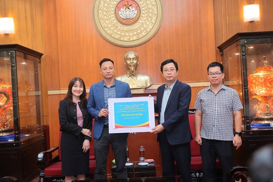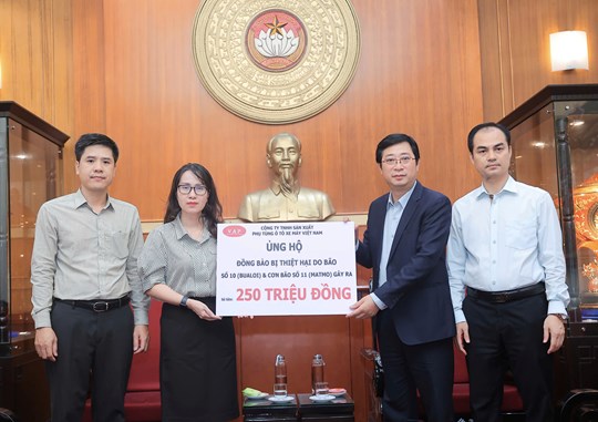 Công ty TNHH Sản xuất phụ tùng ô tô xe máy Việt Nam ủng hộ số tiền 250 triệu đồng. Ảnh Hoài Nam |