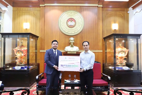 Tập thể CBNV Công ty TNHH BĐS thành phố Xanh ủng hộ số tiền 75 triệu đồng. Ảnh: Minh Hiển |